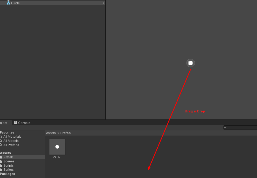 Setelah membuat sprite tersebut, kita akan drag and drop di scene untuk membuat Game Object dengan grafis lingkaran.